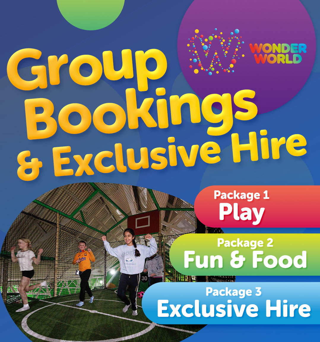 We can accommodate groups from 30 to 225 children, with options for food & drink, or exclusive hire. Please click below to make your group booking, or email our events team at events@wonderworldgroup.co.uk to make an enquiry, or if you have any questions. #LetsMakeMemories