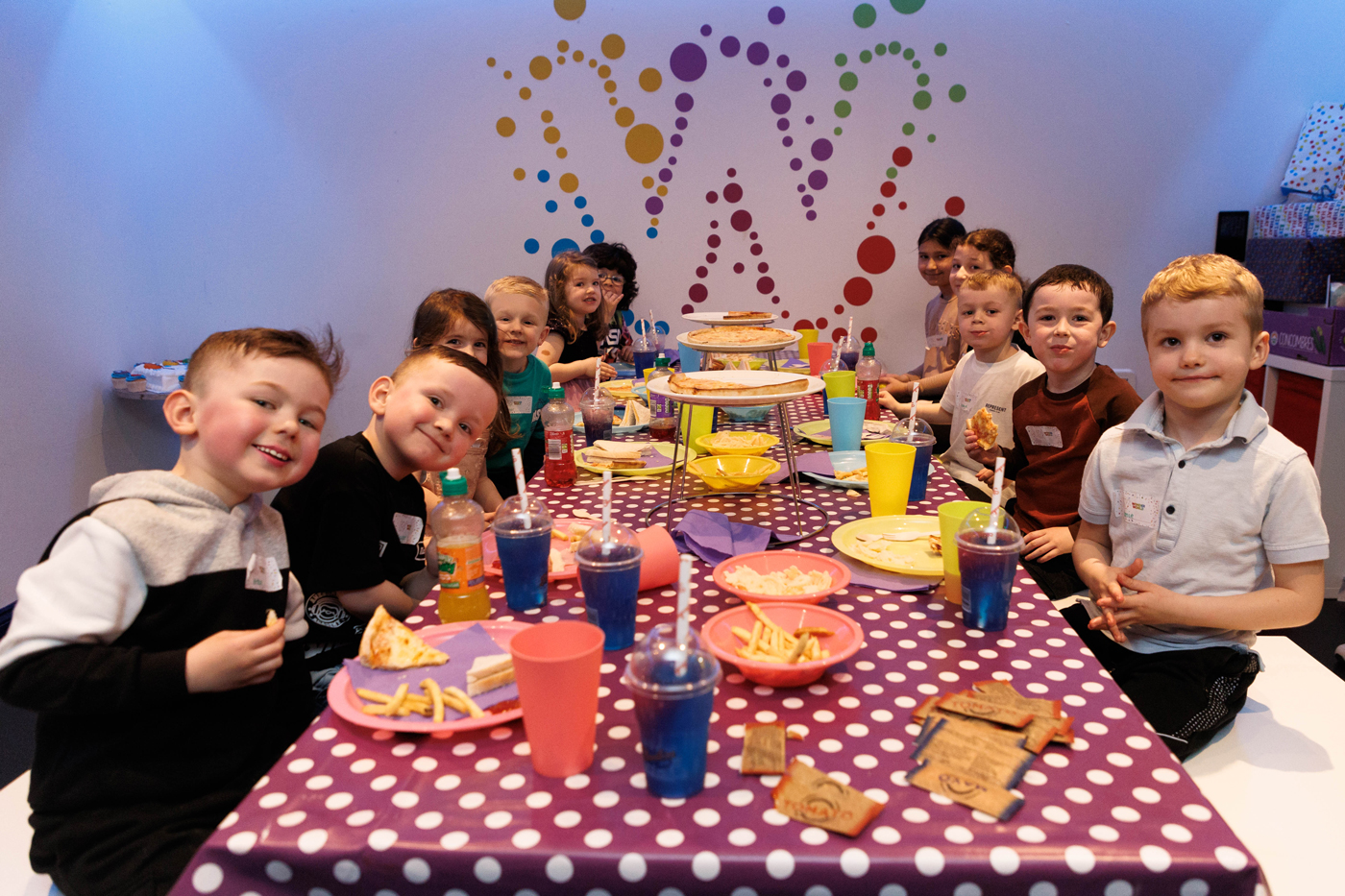 For parties, we allow up to one parent per child (excluding the birthday child, who we allow 4 spectators for). We can reserve a table of 10 for guests attending the party and there is also additional seating throughout the venue.